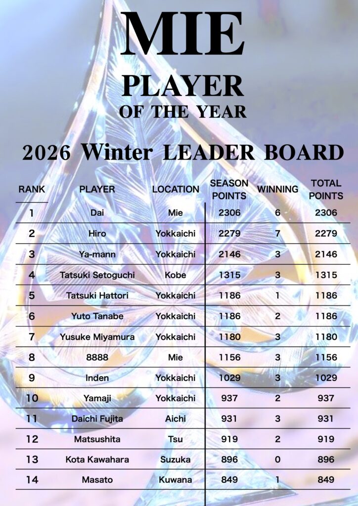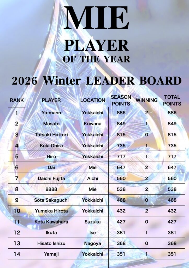 leaderの方にはMieのポーカーの歴史に名を刻める